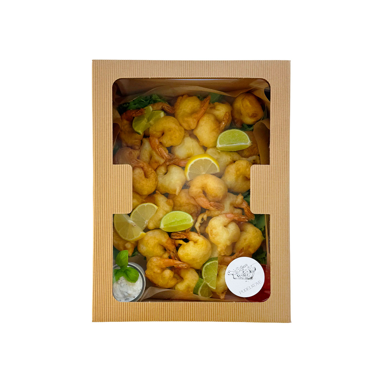 Zawiera 30 krewetek i sosy